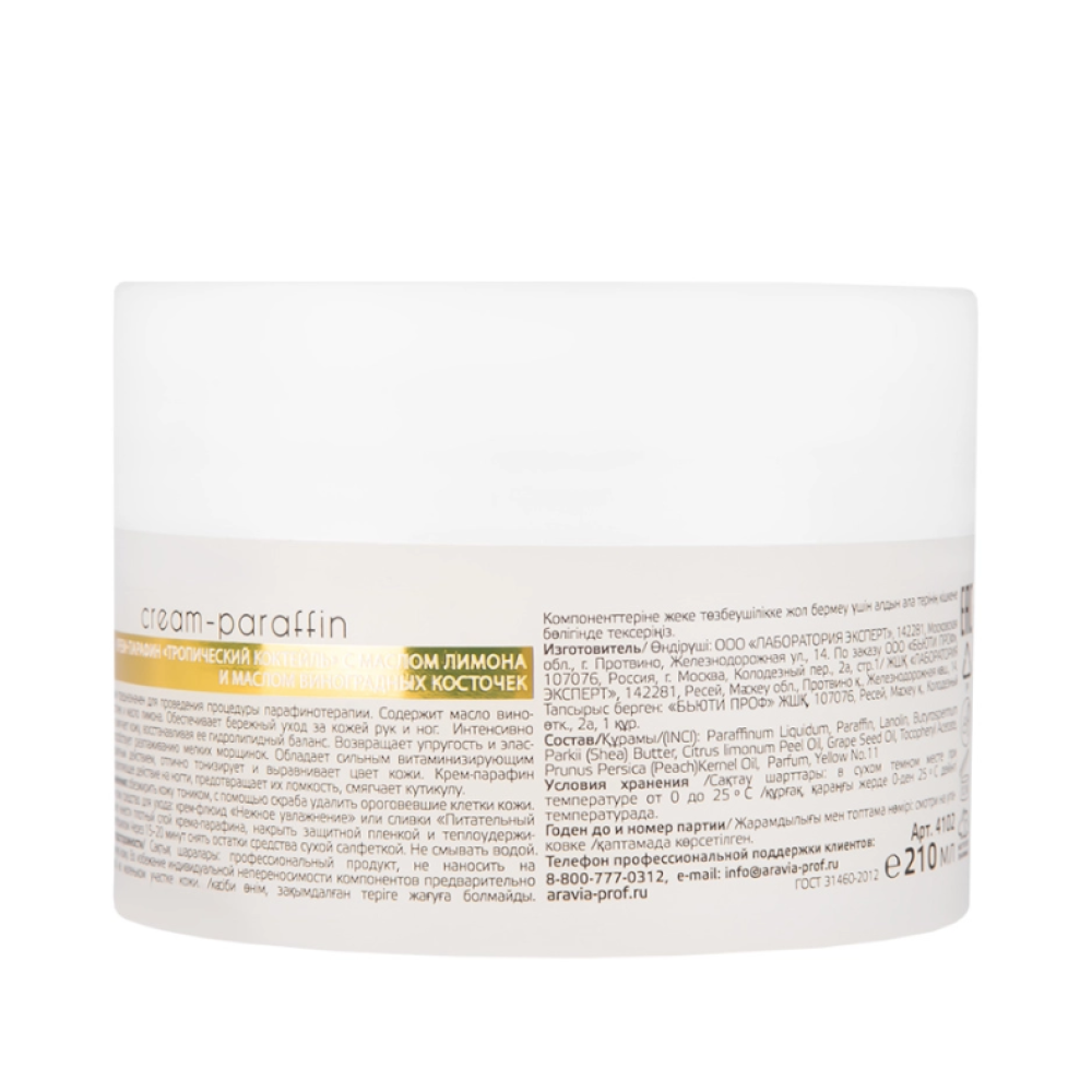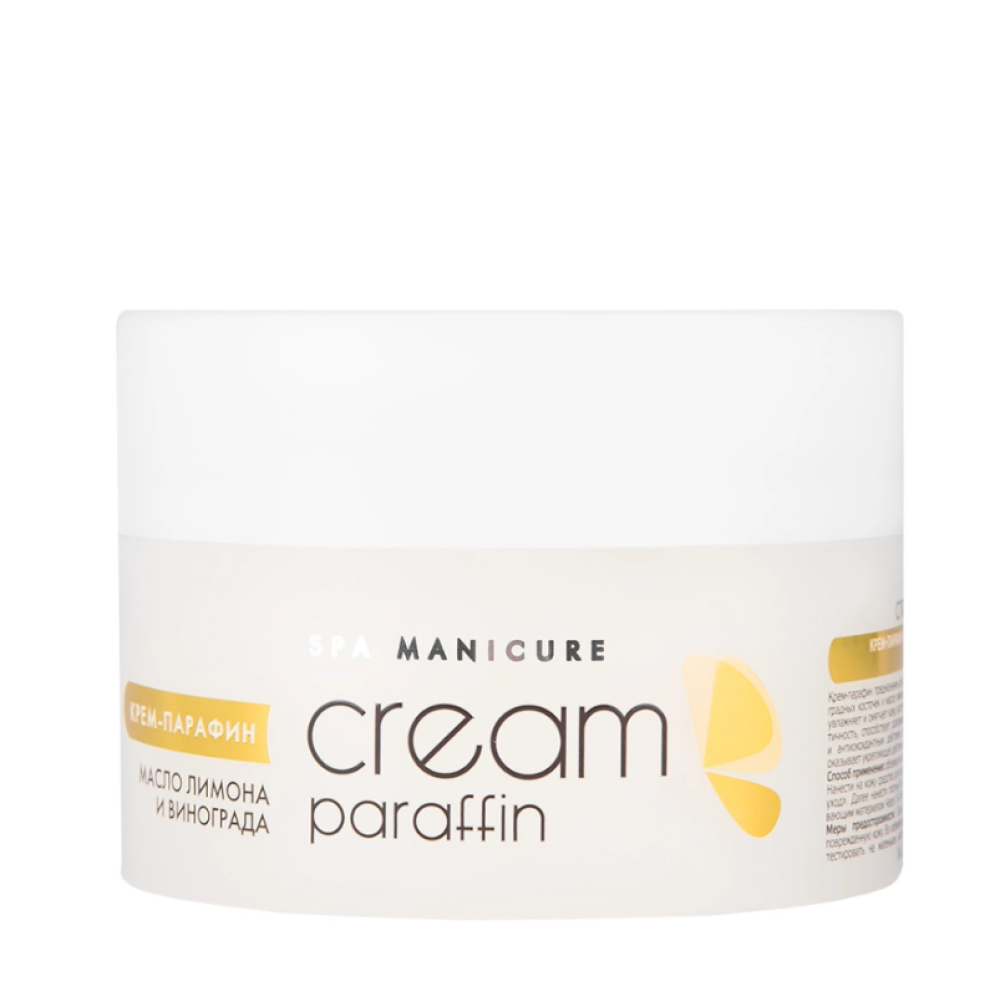 Крем-парафин предназначен для проведения процедуры холодной парафинотерапии. Содержит масло виноградных косточек и масло лимона. Обеспечивает бережный уход за кожей рук и ног. Интенсивно увлажняет и смягчает кожу, восстанавливая ее гидролипидный баланс. Возвращает упругость и эластичность, способствует разглаживанию мелких морщинок. Обладает сильным витаминизирующим и антиоксидантным действием, отлично тонизирует и выравнивает цвет кожи. Крем-парафин оказывает укрепляющее действие на ногти, предотвращает их ломкость, смягчает кутикулу.